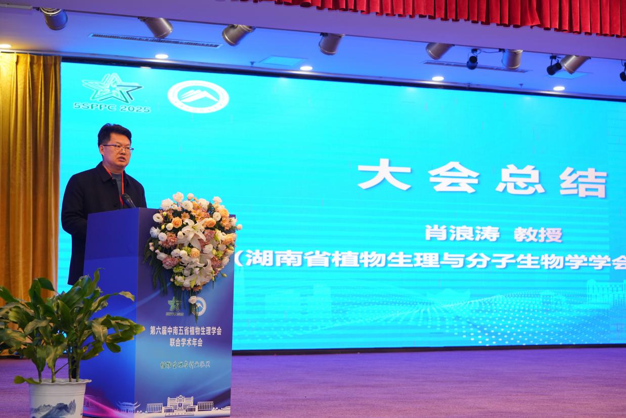 为加强中南五省(湖南、湖北、河南、江西和广东)植物生理学领域科研人员之间的交流与合作,2025年11月28-29日,由湖南省植物生理与分子生物学学会、湖北省植物生理与分子生物学学会、河南省植物生理学会、江西省植物生理学会和广东省植物生理学会联合主办,5060白菜网址大全、经济作物遗传改良与综合利用湖南省重点实验室和湘莲精深加工与营养健康湖南省工程研究中心承办的“第六届中南五省植物生理学会联合学术年会”在湘潭举行。来自中南地区植物生理学与分子生物学工作者和国内领域知名专家400余人齐聚一堂,共同围绕大会主题“植物生理与种业振兴”展开学术交流。